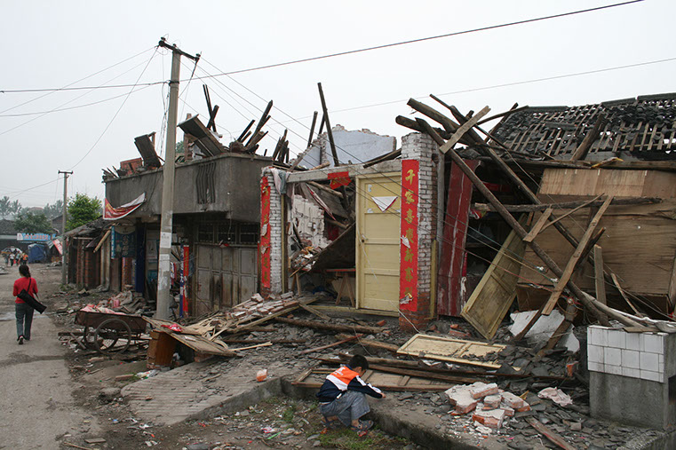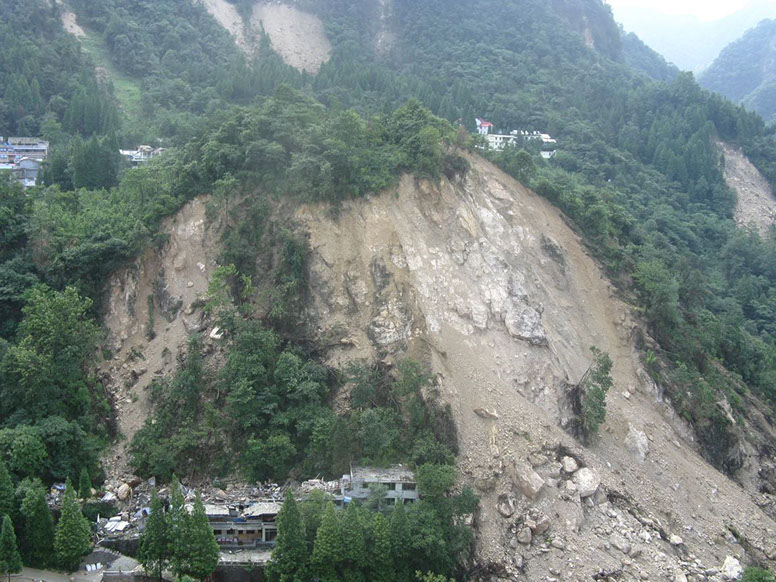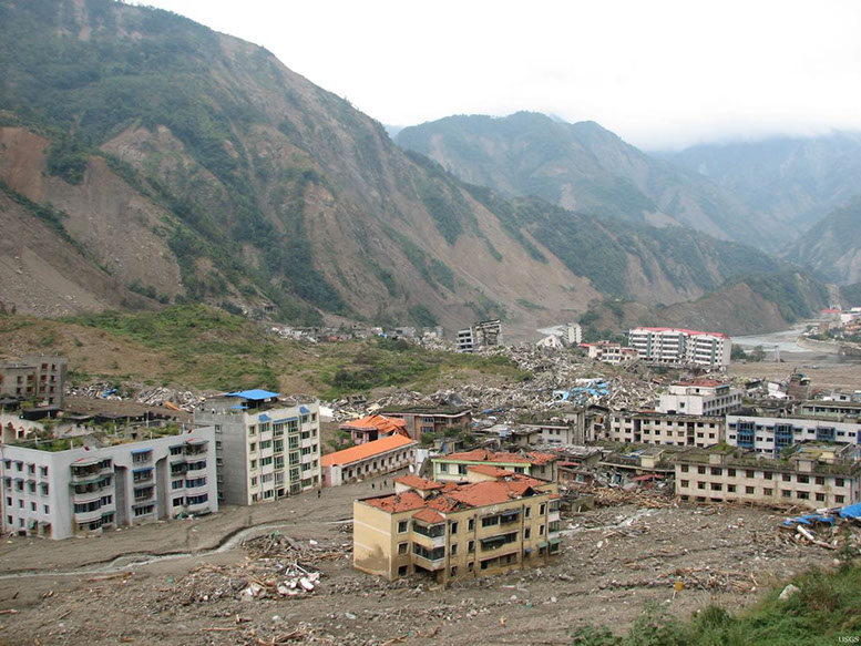 The town of Qushan, Beichuan County, China, was destroyed by strong shaking and catastrophic landslides.