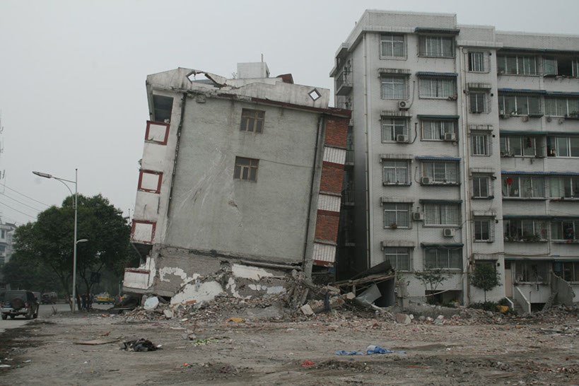 Collapsed residential building in Mianyang, China.