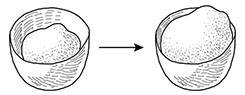 Trey: Like I said, the yeast makes the dough puff up. The yeast cells all keep puffing up the dough with bubbles of carbon dioxide gas. That’s what it means for bread dough to rise. Given time, they reproduce or multiply—they make more of themselves—making more yeast cells that make more bubbles.
