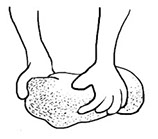 Trey: What? Oh, no, not “need.” Knead: K, N, E, A, D. It’s got a silent K. It means squish, press, and fold the dough, to make it the right texture. See, you sprinkle a little flour on the countertop to keep the dough from sticking, then you put the dough there and press it like this… We’ll all take turns.
