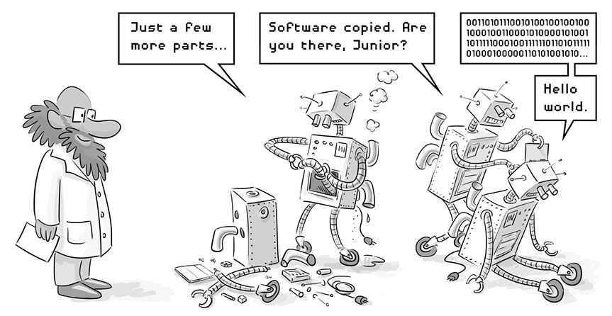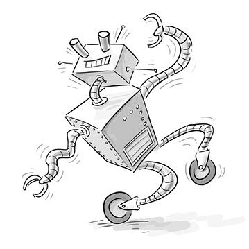 He sends his plans for his new self-reproducing robots across town to the Wild Fabrications Robot Factory. What could go wrong?